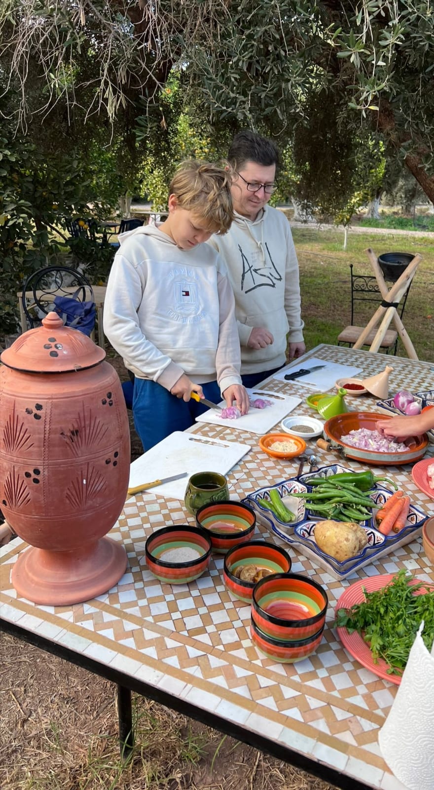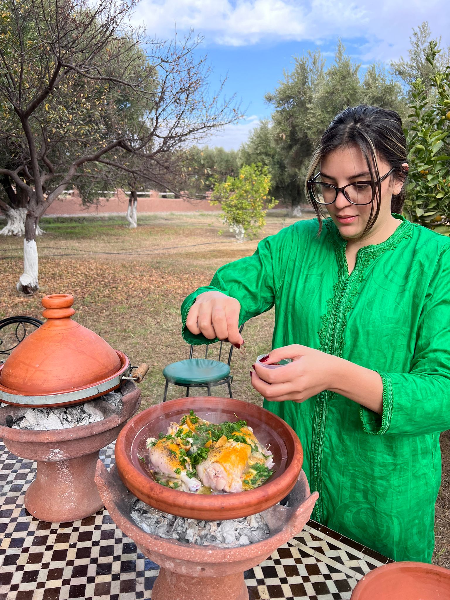 Under the guidance of Chef Khaoula, you’ll prepare a fresh Moroccan salad and a traditional tajine, cooked slowly and full of flavor. Between dishes, enjoy a relaxing walk around the farm — meet the animals, discover the garden, and feel the calm of the countryside.