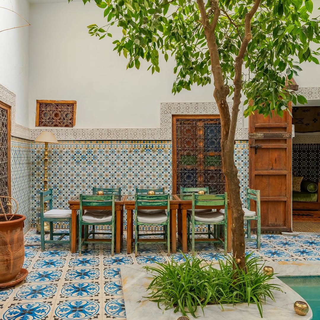 The riad features 10 individually styled rooms, combining traditional Moroccan touches like tadelakt walls, colorful zellige tiles, and carved wood with simple, comfortable furnishings. It’s not flashy — but it’s full of authentic character and warmth.